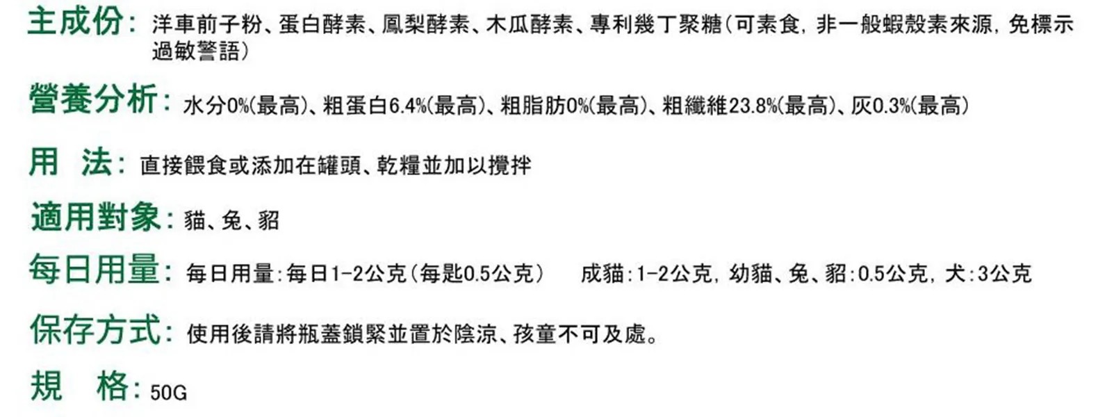 優寶 酵素排毛粉 50g