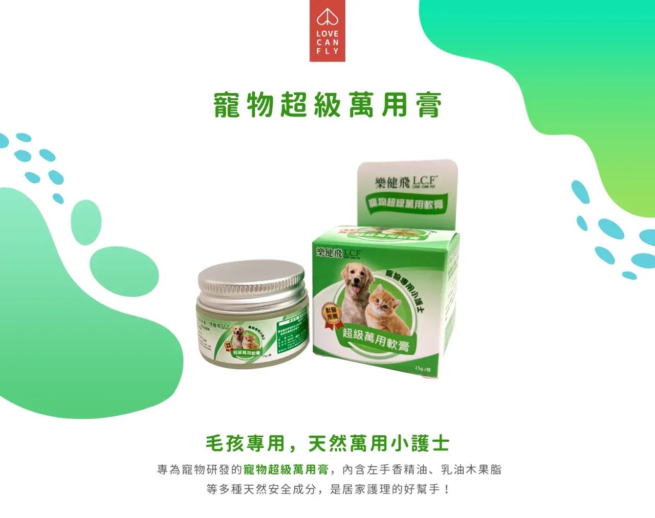 可使用於寵物居家常見症狀,可將軟膏每日或依需要塗抹於患部,每日三到四次