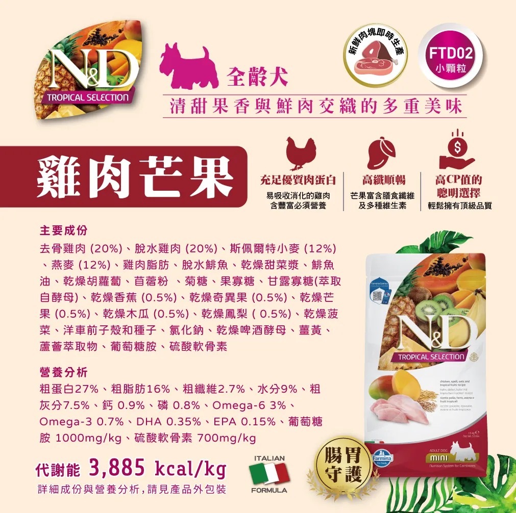 法米納 Farmina FTD 天然熱帶水果 狗飼料 全齡犬