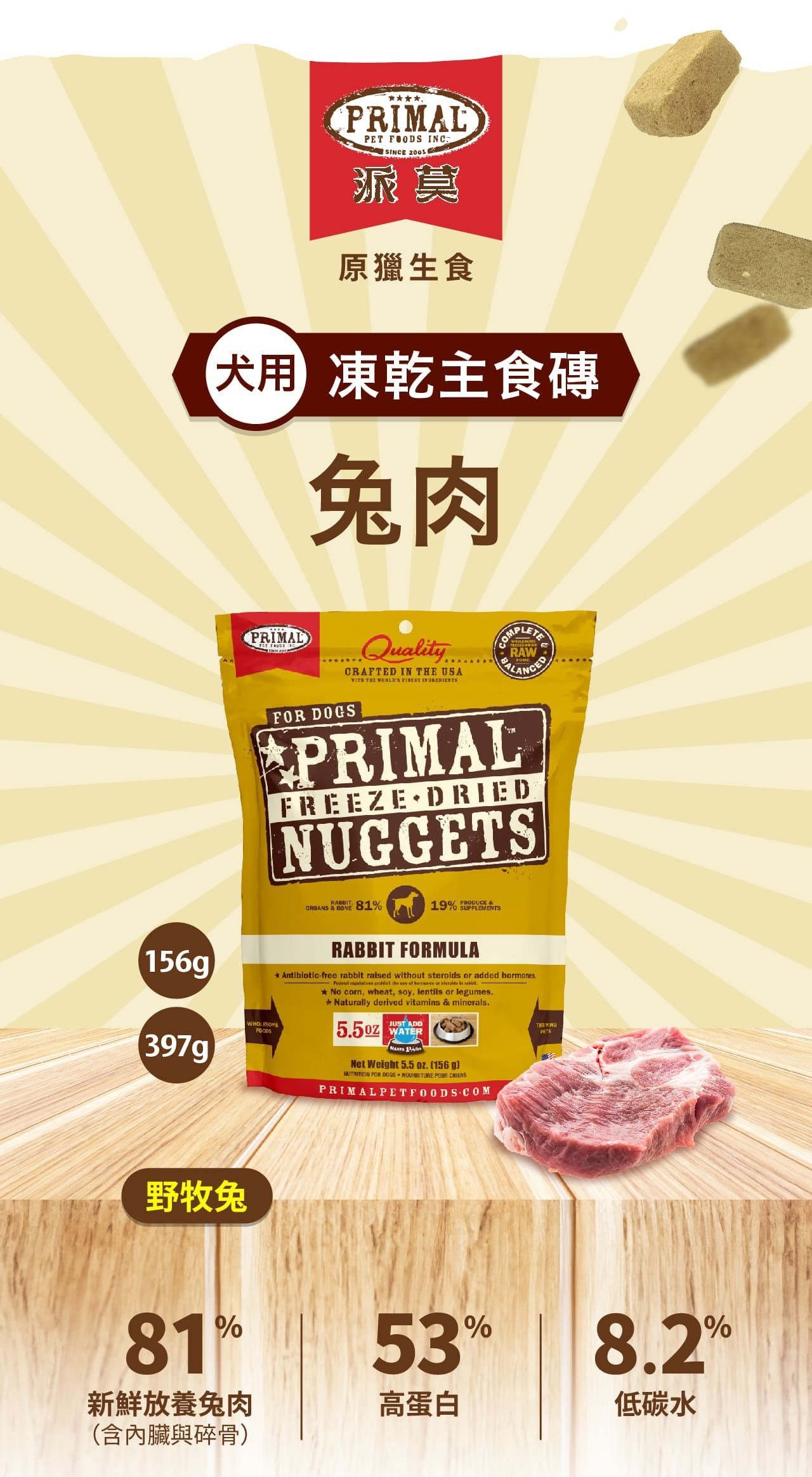 派莫 PRIMAL 原獵生食 犬用凍乾主食磚 兔肉